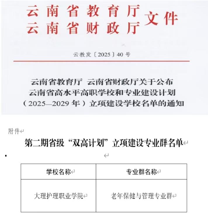 近日,云南省教育厅 、云南省财政厅联合印发《关于公布云南省高水平高职学校和专业建设计划(2025-2029年)立项建设学校名单的通知》(云教发〔2025〕40号),beat365老年保健与管理专业群确定为云南省第二期省级“双高计划”立项建设专业群。