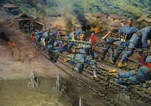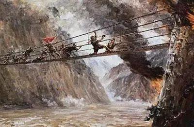 飞夺泸定桥,是中国工农红军长征中的一场重要战役,发生于1935529日。中央红军部队在四川省中西部强渡大渡河成功,沿大渡河东岸北上,主力由安顺场沿大渡河西岸北上,红四团战士在天下大雨的情况下,在崎岖陡峭的山路上跑步前进,一昼夜奔袭竟达240里,终于在529日凌晨6时许按时到达泸定桥西岸。第2连连长和22名突击队员沿着枪林弹雨和火墙密布的铁索踩着铁链夺下桥头,并与东岸部队合围占领了泸定桥。