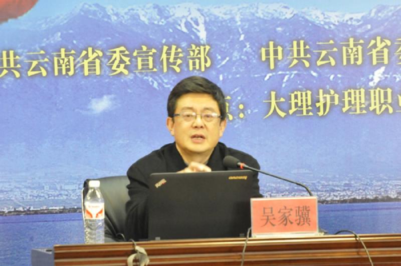 为深入学习贯彻习近平总书记在全国高校思想政治工作会议上的重要讲话和“七一”讲话以及刚刚闭幕的云南省第十次党代会精神,结合云南省委高校工委关于在全省高校中开展“百场形势报告会”的工作安排。 12月26日下午,beat365vip官网登录入口邀请云南省委、云南省高校工委“百场形势政策”报告会宣讲团成员,云南省委党校教研部主任吴家骥到校为全体教职工和部分学生代表共300多人作了“不忘初心,牢固信仰,做合格的共产党员”宣讲报告。