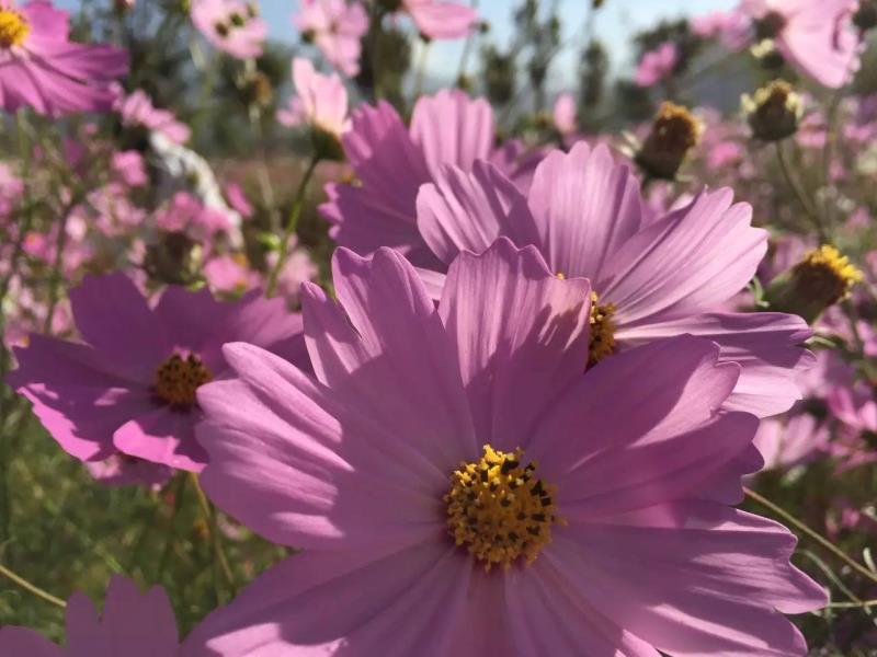 这是一片格桑花海。格桑花柔弱的身躯深深地扎根在泥土里,看上去弱不禁风的样子,却是那样的坚强。