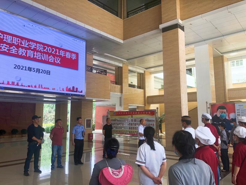 为切实维护校园安全稳定,严防各类安全事故发生。结合学院工作实际,5月20日下午两点,由保卫科牵头组织后勤、保安人员进行安全教育培训。学院石龙富副院长、海东新区派出所刘硕所长、保卫科、保安人员以及后勤科、后勤服务人员共计50余人参加。