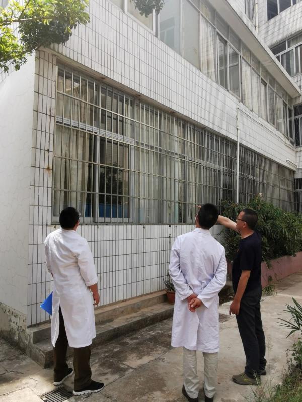 5月22日,为进一步全面排查震后安全隐患,加强门诊部就医安全防范,门诊部各科室人员在马跃民主任的带领下,对门诊部主楼外墙、内部各科室、供应室和后院职工宿舍进行了全面巡查,排查安全隐患。