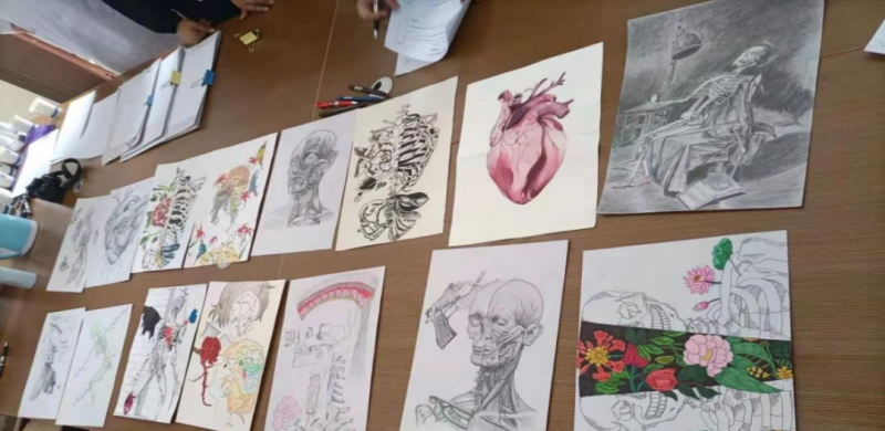 此次大赛共收到beat365各系学生作品500余份,同学们充分施展才智,根据人体解剖学课程相关的人体结构图进行创作,作品别具匠心,融会贯通,诠释人体结构的秘密,赋予解剖图蓬勃的生命力,用科学与艺术碰撞的火花激发大护职院学子的医学灵感。作品包括临摹画和原创画,其中,有深邃立体的颅骨素描、缤纷绚烂的器官水彩画,也有立意大胆的创新结合,实现了绘画艺术与人体结构的完美融合。参赛作品经专家评审,共评选出一等奖5名,二等奖10名,三等奖15名,优秀奖20名。