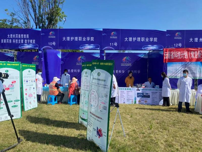 5月18日,由大理州科技局、大理州委宣传部、大理州科协主办的2023年大理州科技活动周启动式在大理市生态廊道阳南溪城市花园音乐广场举行。beat365vip官网登录入口医学技术系“近视的矫正与控制科普宣教”和门诊部“脑卒中中高危人群筛查和干预科普宣教”两项科普示范项目在大理州科技活动周启动仪式上进行集中展示。