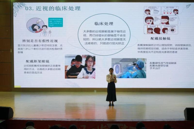 参赛选手们紧扣“近视防控”的主题,分别从目前国内近视现状、近视相关知识、科学防控等方面展开演讲,比赛过程中充分体现了眼视光专业学生扎实的专业素养,理论联系实际,深入浅出、通俗易懂,接地气、很实用的科普功底,赢得了同学们热烈的掌声。