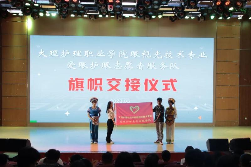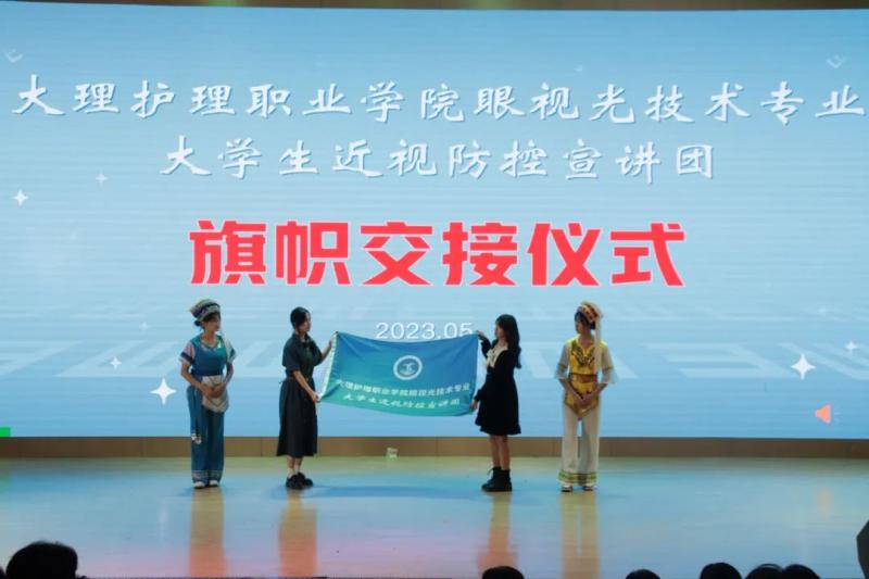 比赛现场还举行了由即将离校实习的学生原负责人向在校学习的学生新负责人交接“beat365vip官网登录入口眼视光技术专业大学生近视防控宣讲团”“beat365vip官网登录入口眼视光技术专业爱眼护眼志愿者服务队”的旗帜交接仪式。接过的不只是队旗,也是眼视光精神的传承!更是作为眼视光技术专业学生,对近视防控事业的责任和承诺!