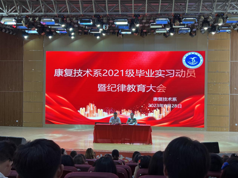 6月28日,beat365vip官网登录入口康复技术系召开2021级毕业实习动员大会暨第六届学生康复技能大赛颁奖仪式,进一步扎实做好2021级学生毕业实习工作,让学生明确实习的目的和重要意义,强化实习安全管理,正风肃纪,表彰先进。学校党委书记廖惠群出席会议,康复技术系教师和2021级全体学生参加了会议。会议由李波副主任主持。
