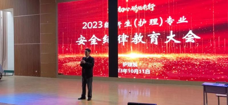 10月11日下午,学校护理系召开2023级新生安全纪律教育大会,进一步强化2023级新生的安全和纪律意识,规范学生在校期间的行为,培养学生良好的道德品质和行为习惯,促进学生的全面发展。护理系党支部书记袁秀林、护理系主任郭太兵和副主任童玲彦出席大会,护理系教师及2023级26个班,1282名新生参加此次会议。