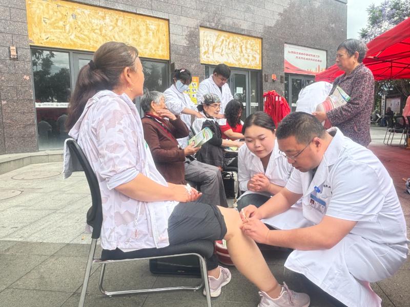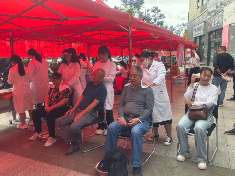 活动现场,门诊部联合学校团委组织的学生志愿者通过悬挂宣传横幅,免费测量血压、血糖、测HIV,发放居民体检报告,给居民中医推拿、艾灸、拔罐等开展义诊宣传活动,向居民宣传通过家庭医生可以获得基本医疗卫生、健康管理、健康教育与咨询、预约和转诊、用药指导等服务,增强居民签约意愿。活动现场气氛热烈,群众涌跃参与,服务居民130余人,发放宣传折页及其他宣传品200余份,受益群众达220余人。