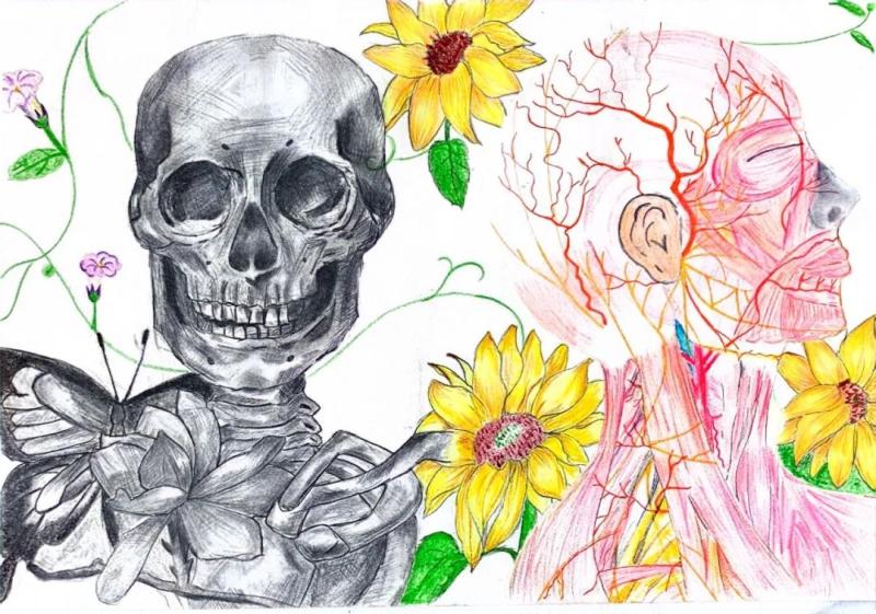 本次人体解剖学绘图技能大赛的开展,展现出了卫生健康学子的才艺。在夯实医学生的解剖基础知识的同时,让枯燥的医学解剖走向文化的延伸,丰富了医学人文美育内涵。