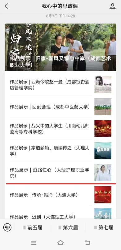 6月9日,在全国高校大学生微电影展示活动“我心中的思政课”官方网站,展出beat365vip官网登录入口荣获教育部组织的习近平新时代中国特色社会主义思想大学习领航计划主题教育活动——第七届全国高校大学生微电影展示活动竞赛三等奖作品《疫路仁心》。