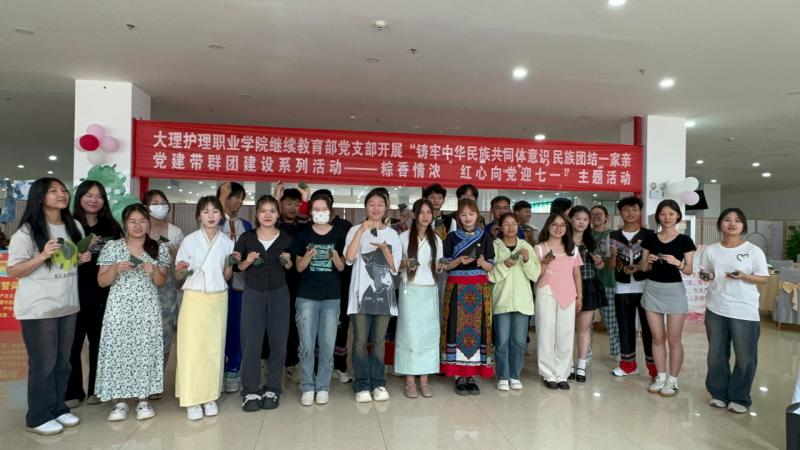 6月6日,继续教育党支部开展了“粽香情浓 红心向党迎七一” 铸牢中华民族共同体意识教育实践活动。师生一起包粽子,欣赏白族扎染作品,共植“祝福树”,共庆佳节,共建和谐平安美好校园。