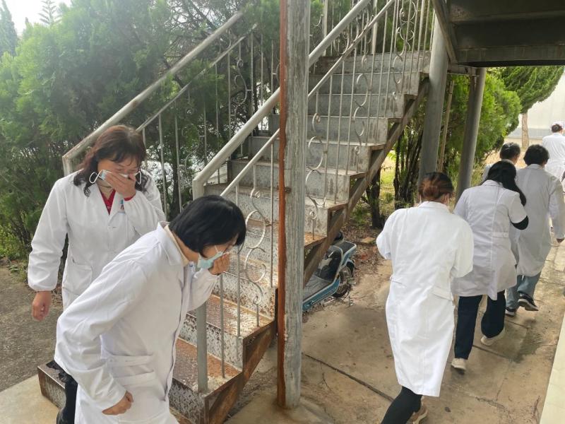 应急演练现场,模拟科室突然发生火灾,警报响起后,门诊部应急救援小组快速反应、密切配合,将患者全部转运至安全集中点,整个过程井然有序,各个环节有条不紊,灭火救援快速、准确,达到演练效果。