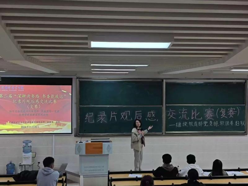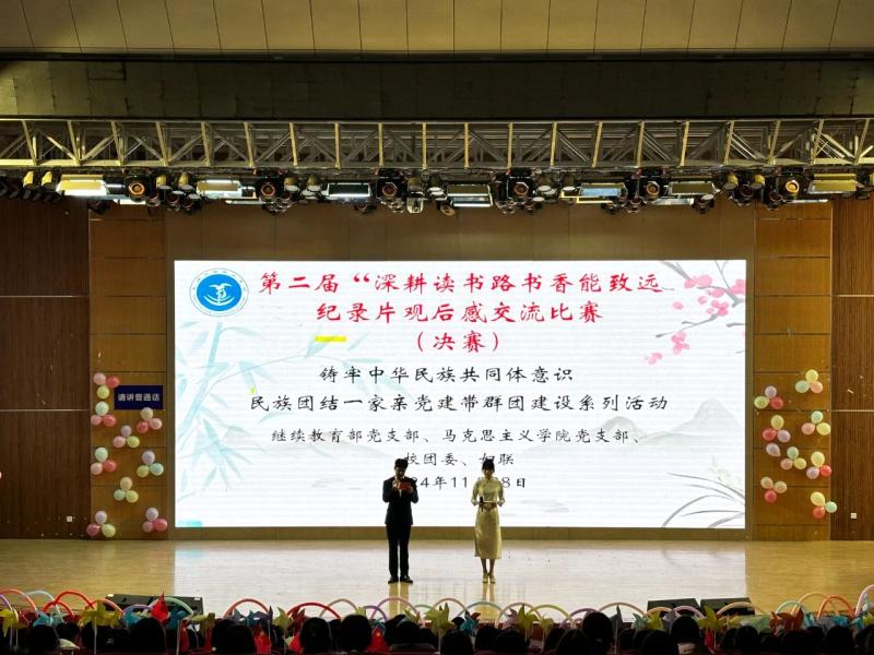 近日,学校继续教育部党支部联合学校多部门,成功开展了“深耕读书路 书香能致远 铸牢中华民族共同体意识 民族团结一家亲 党建带群团建设系列主题活动——第二届纪录片观后感交流比赛”。活动旨在全面贯彻落实党的二十届三中全会精神,充分发挥党建带群团建设的作用,深入开展铸牢中华民族共同体意识教育实践活动,促进民族团结进步,推进和谐美丽、清廉校园建设。活动通过组织学生观看纪录片并引导他们表达出观后感,点燃他们对知识探索的热情,培养他们勤于思考和乐于探究的习惯,进而全面提升学生的综合素质。