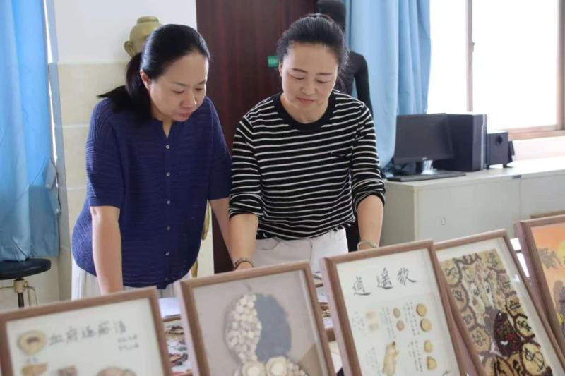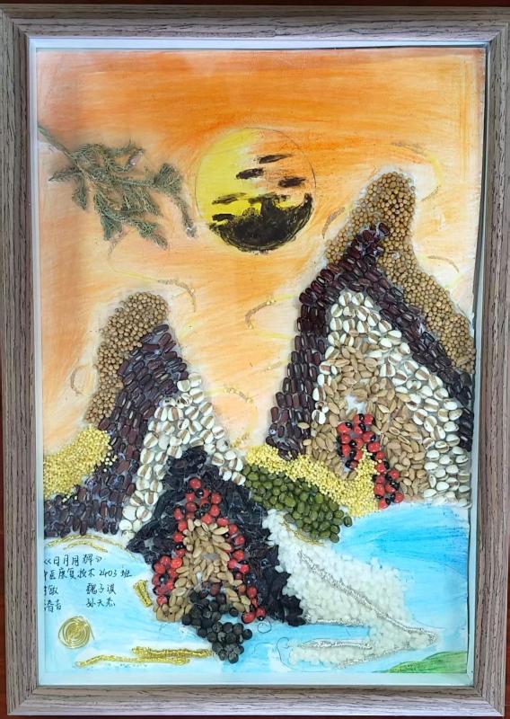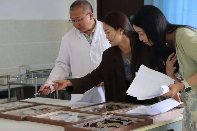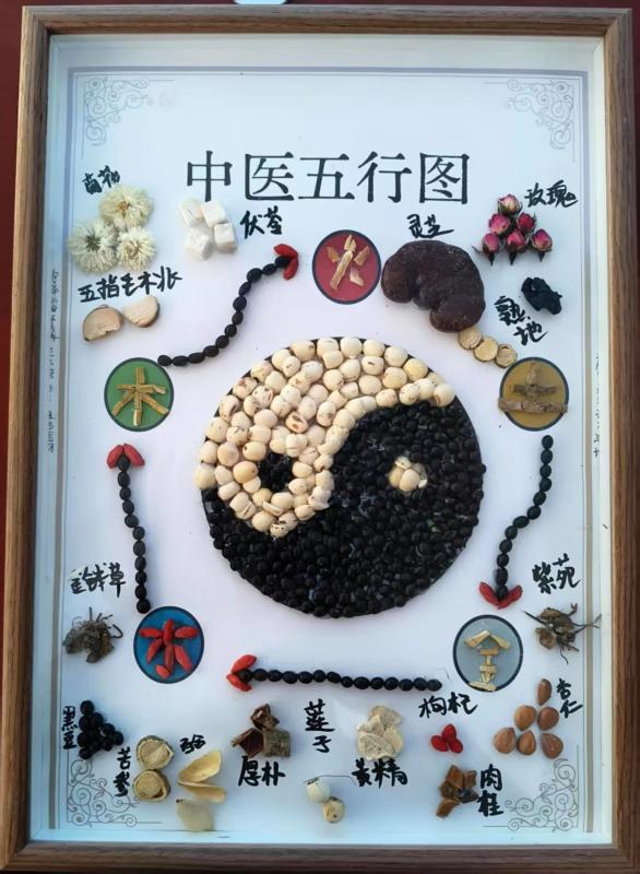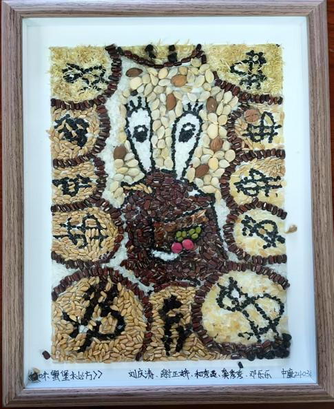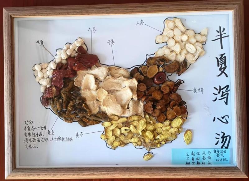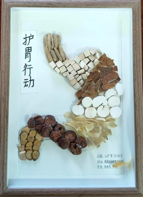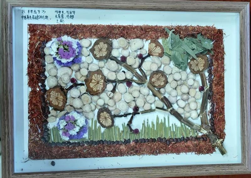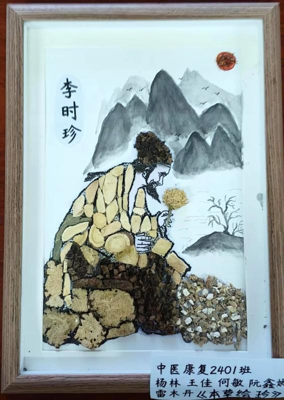以中药材为笔,创意为墨,44件学生作品通过拼贴艺术,生动呈现中药的文化内涵。茯苓、当归、枸杞等等药材化作山水、花鸟与人物,将中药知识与美学创意完美融合,吸引师生驻足品鉴。