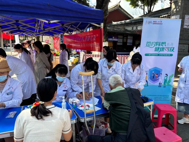 5月22日,学校门诊部受大理市卫健局邀请,到大理古城开展“家庭医生签约”义诊宣传活动。活动现场,门诊部社区公卫科工作人员通过悬挂宣传主题标语、向广大居民群众宣传“家庭医生签约”服务意义和内容、合理膳食、中医药保健知识、家庭医生团队、签约服务的内容、服务方式和优惠措施等活动;传播以签约服务促进健康管理的理念,增加家庭医生团队社会美誉度,提高居民签约的积极性。活动中,门诊部工作人员还为居民测量血压,测血糖,并对居民提供中医推拿等康复义诊服务。