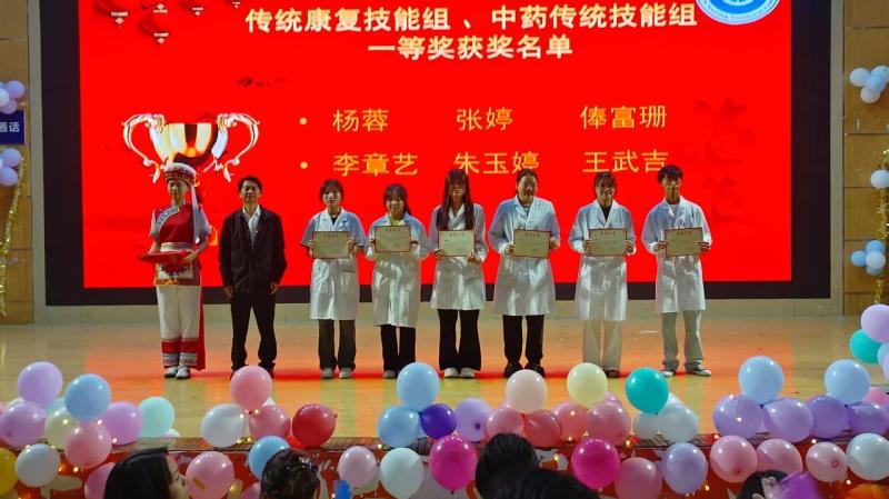 文艺晚会的激情尚未褪去,现场随即迎来了庄严而激动人心的时刻——第八届康复技能大赛颁奖仪式。作为康复技术系的年度盛事,本届大赛旨在以赛促学、以赛促练、以赛促教,共设置了传统康复技能组、中药传统技能组、现代康复技能组等三大赛项,全面检验了学生的理论知识、实践操作能力和职业素养。