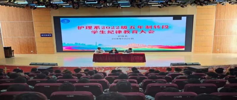 为扎实筑牢校园安全防线,进一步强化学生纪律意识,助力五年制转段学生平稳衔接大学生活,9月22日,护理系在学校第一报告厅召开2022级五年制转段学生安全纪律教育专题大会。会议由护理系学生管理科科长张敏华主持,护理系党支部袁秀林书记、护理系童玲彦主任出席会议。