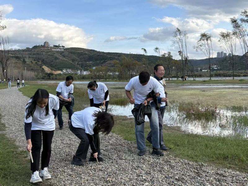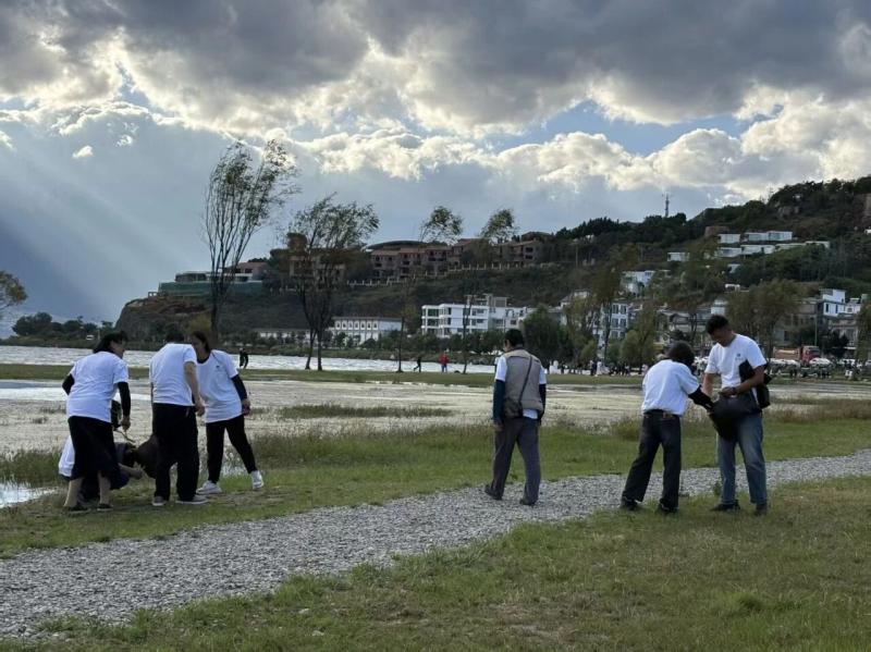 健步走结束后,教职工们迅速转变角色,投入到洱海环保志愿服务中。大家手持垃圾袋、夹子等工具,沿着洱海周边海滩、步道仔细清理各类垃圾,包括塑料瓶、包装袋、烟头等。同时,向过往游客宣传洱海保护的重要性,倡导大家爱护环境,共同守护洱海的碧波。教职工们以实际行动践行环保理念,展现了良好的精神风貌。