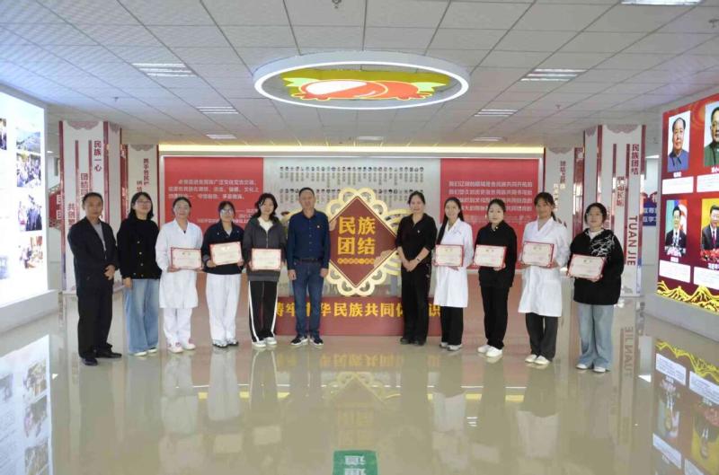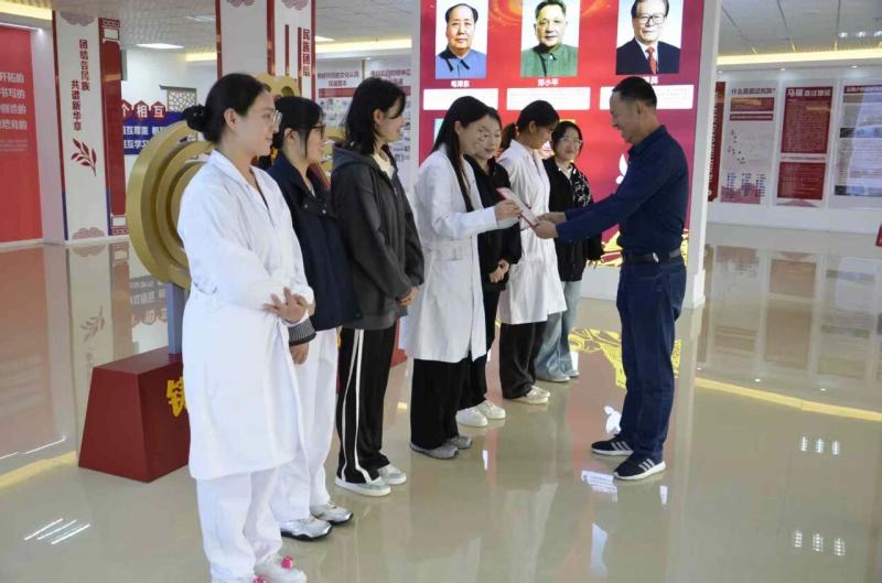 10月29日上午,beat365vip官网登录入口铸牢中华民族共同体意识主题教育馆宣讲团举行成立仪式。学校党委副书记字利鹏为宣讲团指导教师夏双琼和6位分别来自护理系、康复技术系和医学技系的宣讲团成员颁发了聘书。学校党委统战部部长张晓红和组织部副部长刘现春参加仪式。