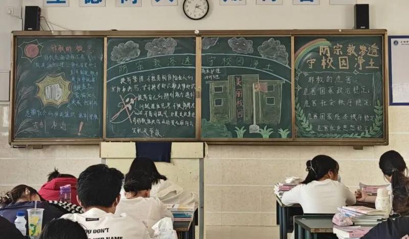 主题班会上,辅导员和班主任组织学生集中学习了《云南省教育系统统一战线知识读本》和《云南省教育系统宗教知识读本》,引导师生筑牢思想防线,强化“教育与宗教相分离”的法治意识,增强对铸牢中华民族共同体意识的认同,树立科学的宗教观,形成“人人警惕、共同防范”的防御宗教向校园渗透的氛围。