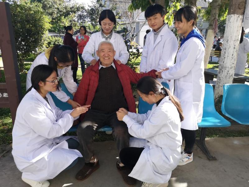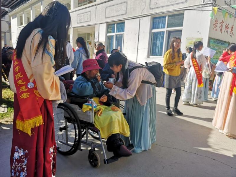 2018年11月14日,红嘴鸥开始来洱海过冬了,冬日暖阳照在大理市南山养老院里。beat365vip官网登录入口基础教学部党支部,带领院团委汉服社、爱心社、中医社的60名学生到养老院进行“党建带团建,中华传统美德师生行”活动。