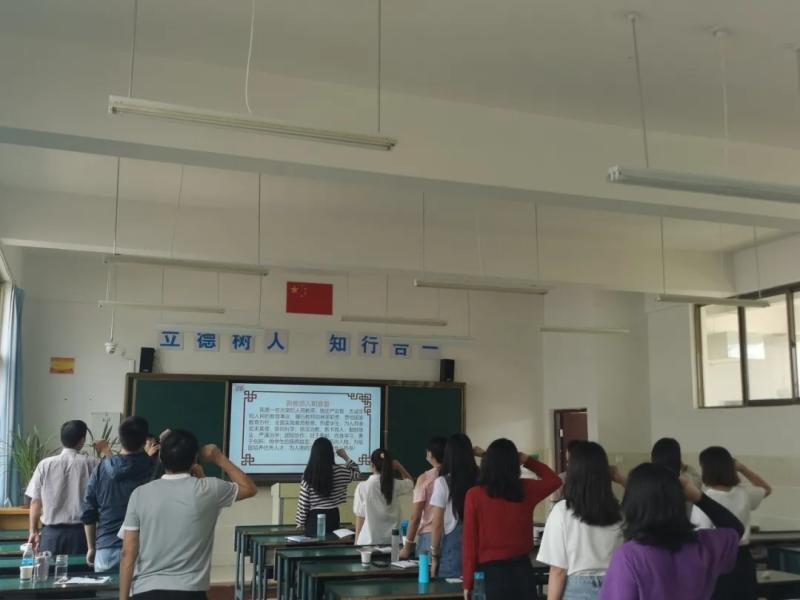 袁秀林书记要求新入职教师要认真落实立德树人的根本任务,加强师德师风建设,严格遵守学校纪律,做一名有理想信念,道德高尚的新时代高校教师。