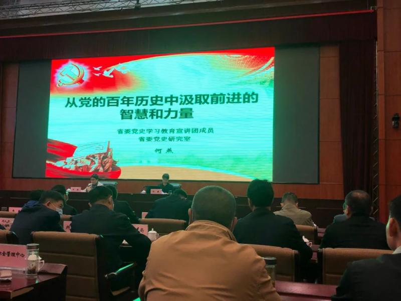 报告会上,党史学习教育省委宣讲团成员何燕老师以“从党的百年历史中汲取前进的智慧和力量”为题,将多个生动鲜活的党史故事贯穿其中。