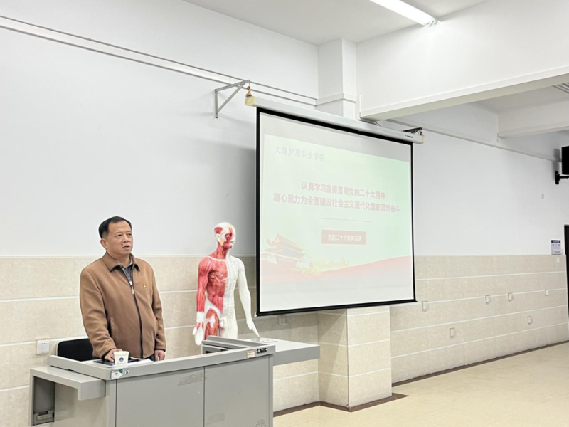李大文指出,学习宣传贯彻党的二十大精神是当前和今后一段时期的首要政治任务,康复技术系党支部全体党员和康复技术系全体教职工,要充分深刻认识党的二十大的重大意义,引领师生深刻领悟“两个确立”的决定性意义,增强“四个意识”、坚定“四个自信”、做到“两个维护”,以实际行动践行对党绝对忠诚;要深刻领会党的二十大报告的丰富内涵,原原本本学、逐字逐句学,切实把思想和行动统一到党中央决策部署上来,坚定为党育人、为国育才的初心使命,全面落实立德树人根本任务;要学以致用、知行合一,坚定贯彻落实好党的二十大作出的重大决策部署,把智慧和力量凝聚到落实党的二十大提出的各项任务上来,着力打造老年保健与管理专业群,努力争取开设中医学、针灸推拿等国控优质专业,奋力谱写学校高质量发展新篇章。
