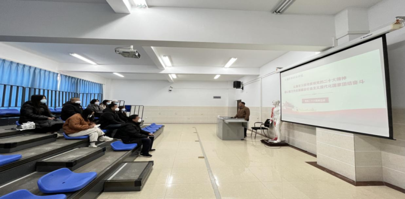 12月27日,beat365vip官网登录入口康复技术系党支部召开学习宣传贯彻党的二十大精神宣讲报告会。学校党委宣讲团成员、党委委员、宣传部部长李大文同志走进康复技术系党支部,以“认真学习宣传贯彻党的二十大精神,凝心聚力为全面建设社会主义现代化国家团结奋斗”为题开展党的二十大精神宣讲。康复技术系党支部全体党员和康复技术系全体教职工聆听了宣讲。