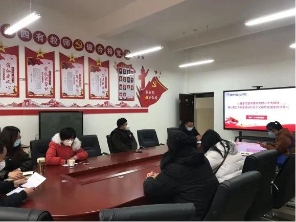 2022年12月31日,公共基础部党支部召开党的二十大精神宣讲报告会,学校党委委员张磊同志以《认真学习贯彻党的二十大报告精神 凝心聚力为全面建设社会主义现代化国家团结奋进》为题,为公共基础部党支部全体党员和教师宣讲。会议由支部书记钱雪娟同志主持。