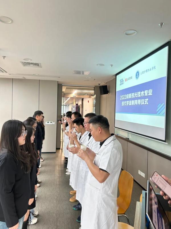 3月17日,学校医学技术系教师带领眼视光技术专业现代学徒制学生赴广东星创视光光学科技有限公司展开为期一年半的人才培养之旅,广东星创视光光学科技有限公司在大南区总部举行了隆重的拜师仪式。