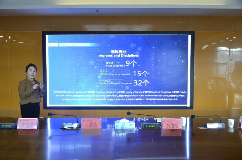 座谈会上,王蓓蓓女士详细介绍了西那瓦国际大学的建校背景、办学资质、校园环境、游学方案、学科专业、国际合作等方面的情况。分享了西那瓦国际大学在国际化教育方面的经验和优势,希望与beat365vip官网登录入口建立友好关系,拓宽教育合作渠道,表达了与学校开展实质性教育合作交流的期待。王蓓蓓女士对beat365vip官网登录入口的特色学科建设和人才培养方面取得的成绩给予了高度评价。