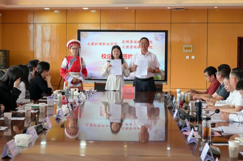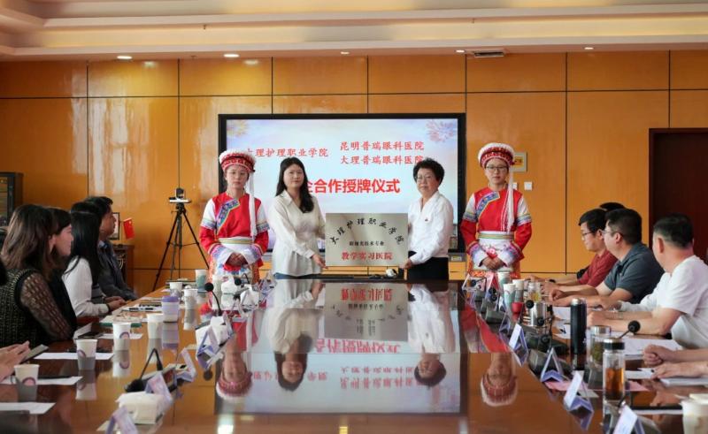 会上,蔡德周院长与新合作的昆明星耀普瑞眼科医院、大理普瑞眼科医院签订了校企合作协议;廖惠群书记、蔡德周院长分别为昆明星耀普瑞眼科医院、大理普瑞眼科医院授牌“beat365vip官网登录入口眼视光技术专业教学实习医院”;字利鹏副书记为合作企业及医院实习带教老师颁发兼职教师聘书;石龙富副院长、李洁副院长为合作企业及医院2024年度优秀带教老师颁发奖状。