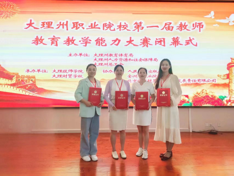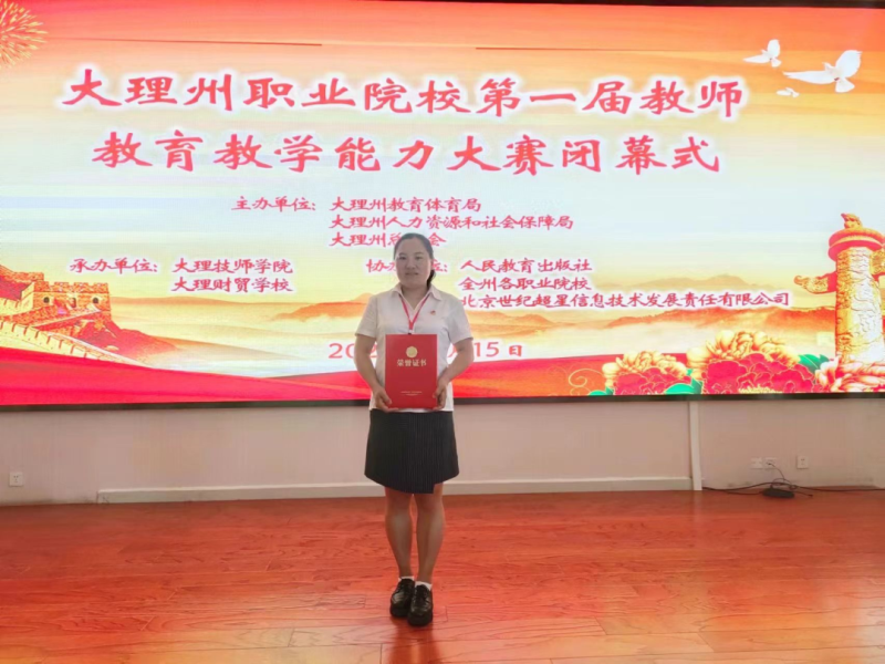 beat365vip官网登录入口教师在大理州教育体育局、大理州人力资源和社会保障局、大理州总工会组织开展的2022年大理州职业院校第一届教师教育教学能力大赛公共基础课组、专业课组、班主任能力组三个级组中荣获2个一等奖、1个二等奖和5个优秀奖的佳绩。