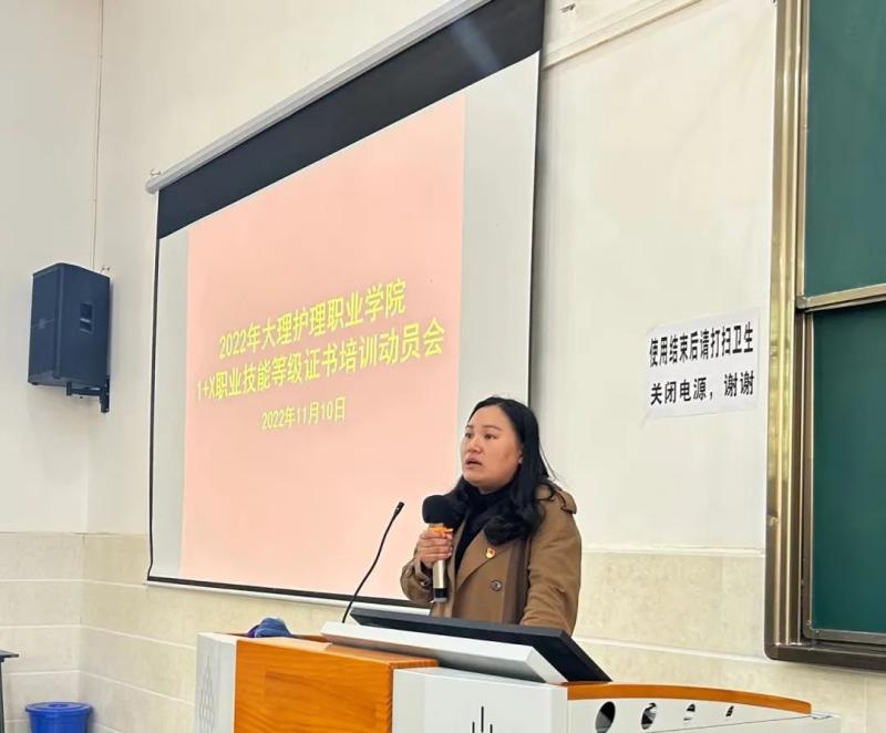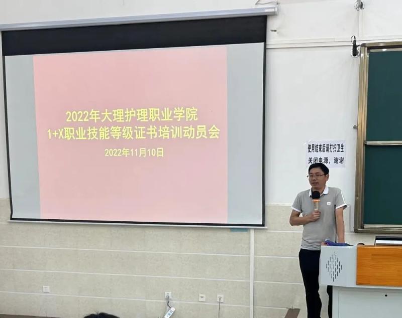 11月10日下午,beat365组织召开“1+X”职业技能等级证书培训动员大会。教务科、护理系、证书项目组教师和参培学生参加本次动员大会。会议由护理系郭太兵主任主持。