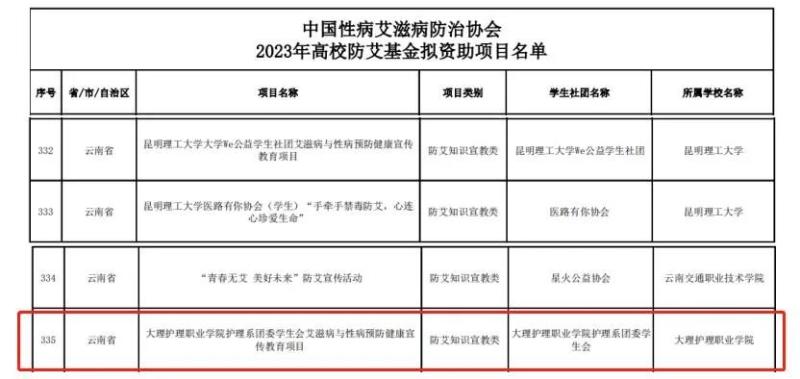 近日,中国性病艾滋病防治协会公布了2023年高校防艾基金申请项目入选名单,beat365李渊老师为项目负责人,郭太兵、袁秀林、茶国萍、金旭老师为项目组成员,指导护理系团委、学生会申报的《艾滋病与性病预防健康宣传教育项目》首次成功入选立项。