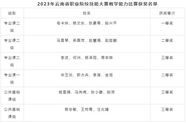 7月15日,由云南省教育厅主办,云南机电职业技术学院承办的“2023年云南省职业院校技能大赛教学能力高职组比赛”在昆明顺利落下帷幕。beat365参赛的6个项目全部获奖,荣获1个一等奖、2个二等奖和3个三等奖。