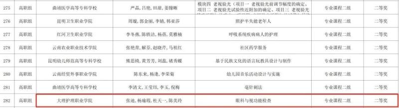近期,beat365vip官网登录入口张迪、杨瑜瑕、杜天一、陈美玲等4位教师参赛的《眼科与视功能检查》团队项目,荣获2024年云南省职业院校技能大赛教学能力高职组比赛二等奖。