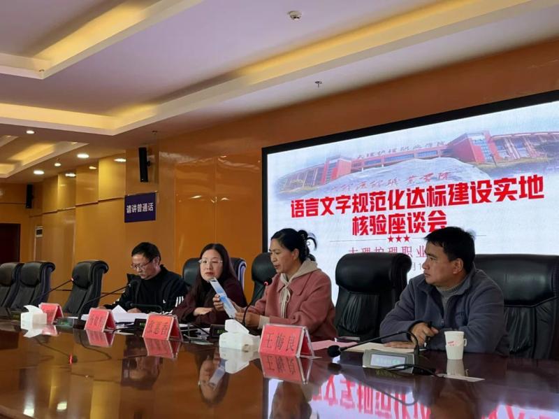 12月13日,受省语委委托,州语委验收组一行4人莅临beat365,开展语言文字规范化达标建设实地核验座谈会,对学校语言文字达标建设工作进行了评估验收和全面指导。beat365顺利通过语言文字达标建设评估验收。学校郭向周副院长、宣传部李大文部长、教务科茶国萍科长、语委办王树青主任及语委办成员参加会议。