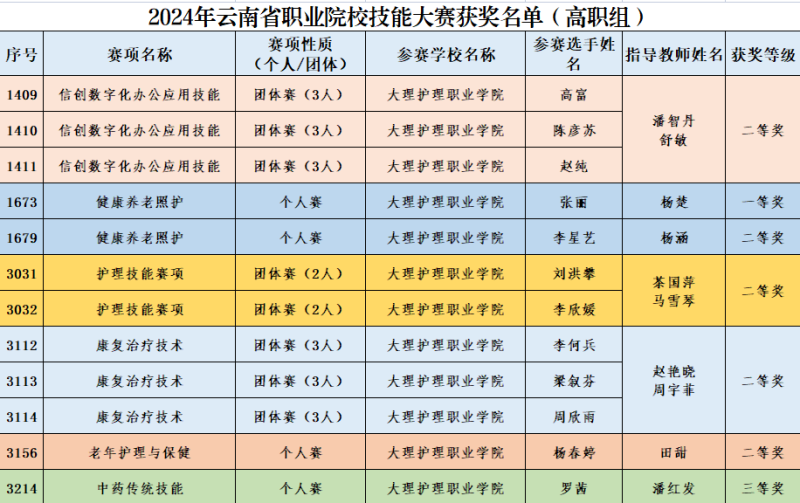 2024年云南省职业院校技能大赛已全部完成比赛,经评审、公示。beat365共有6个赛项,12名学生,10名指导教师获奖,其中荣获一等奖1项,二等奖5项,三等奖1项。