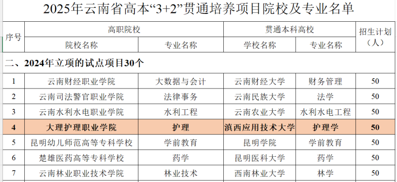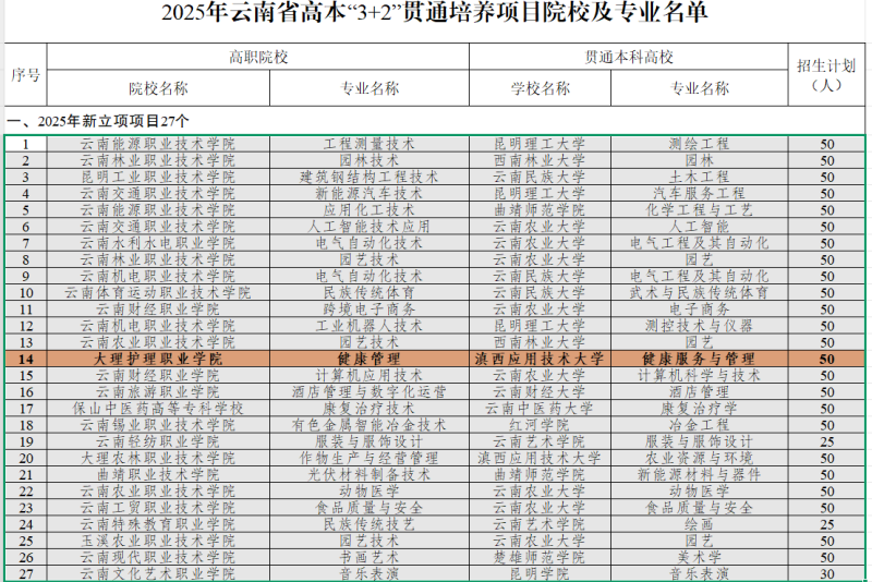 近日,云南省教育厅下发《关于公布2025年职业教育“中高本”贯通培养项目遴选结果》的通知,beat365vip官网登录入口获批2025年高本“3+2”贯通培养项目院校,学校健康管理专业与滇西应用技术大学健康服务与管理专业合作开展一体化高本“3+2”贯通培养,2025年计划招生50人。