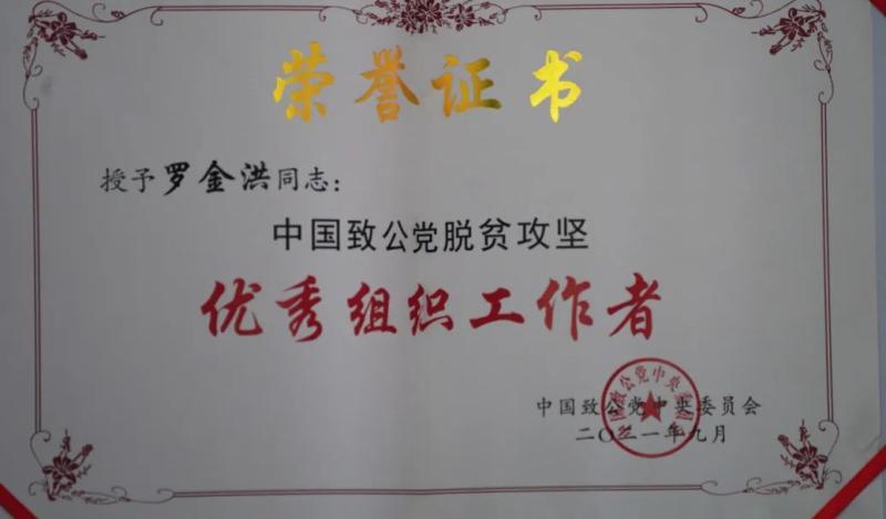 由于成绩突出,罗金洪获得由中国致公党中央委员会颁发的脱贫攻坚优秀组织工作者。罗金洪说,对他最大的嘉奖是,石竹村的村干部和村民对民主党派,对他自身认知的180度大转变。