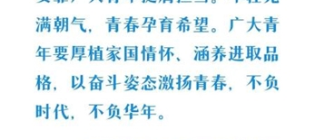 未来属于青年,希望寄予青年。长期以来,习近平总书记始终关心青年成长成才、谋划青年工作发展进步。言之谆谆、期望殷殷,激励着广...