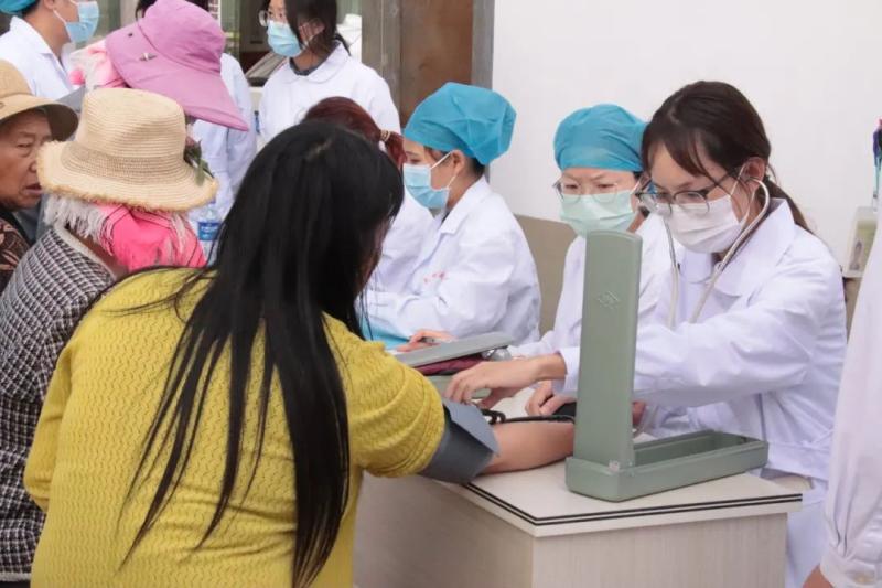 活动分为四个小组进行开展。血压、血糖测量组由学校门诊部医生为当地村民测量血压、血糖,并对村民进行健康宣教,增加当地居民对高血压病、糖尿病的正确认识,积极预防。