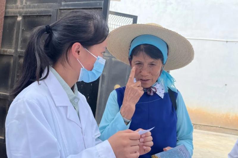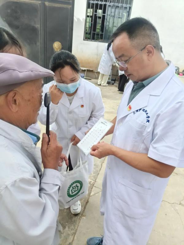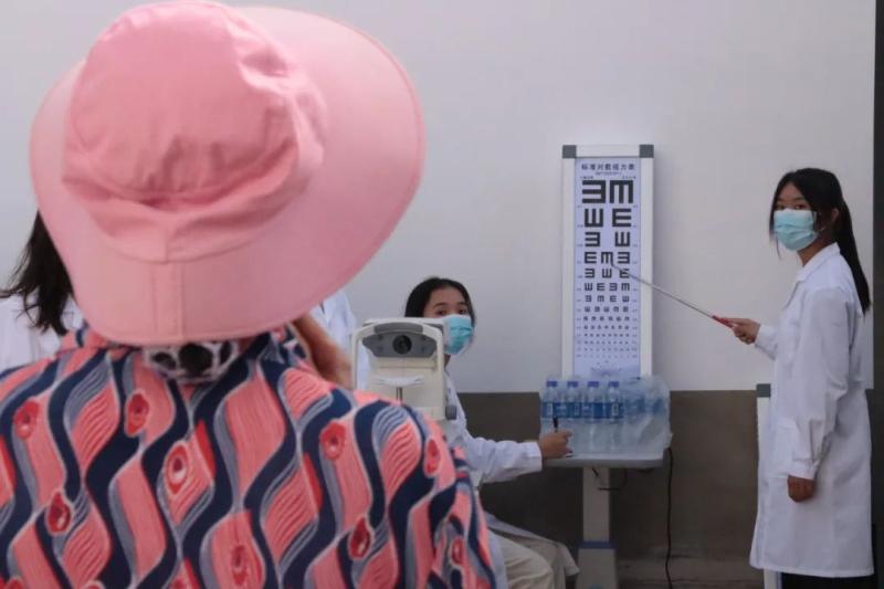 视力筛查组在beat365医学技术系主任王增源老师的指导下,为村民开展视力筛查,并对筛查结果进行耐心解释,传授爱眼护眼知识。