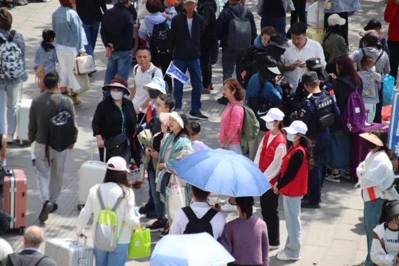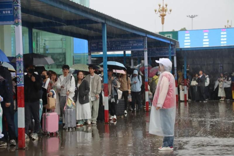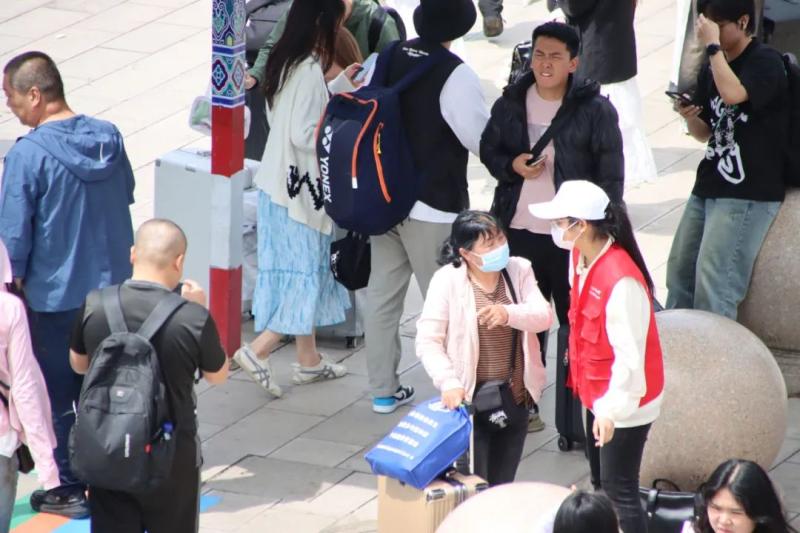 行走的“红色小马褂”每天活跃在大理站的进出站口,化身为热心的“东道主”,向游客介绍详尽的游玩攻略,为游客出行保驾护航,确保每一位来到大理的游客都能获得满意的旅游体验。