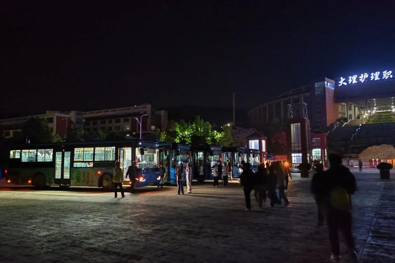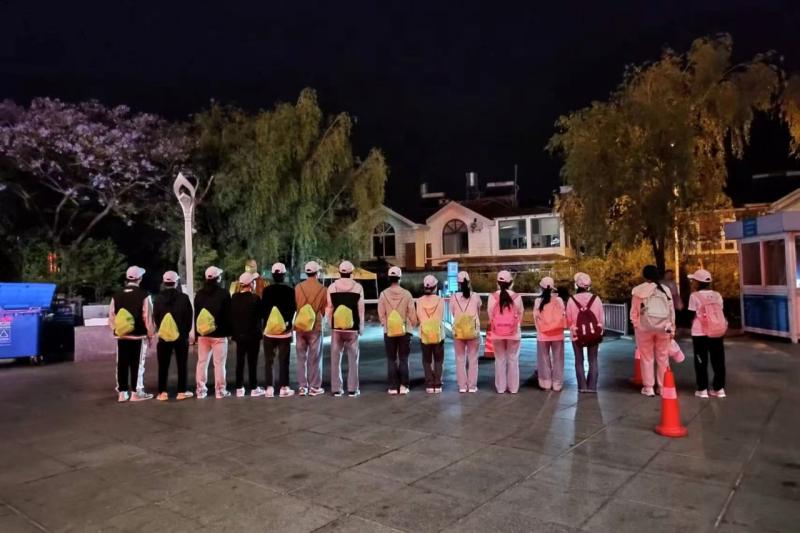凌晨4点,志愿者们伴着星光在学校集合,整装待发。