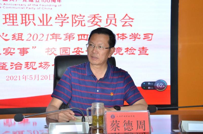 中共beat365vip官网登录入口委员会党委理论学习中心组举行2021年第四次集体学习暨“我为师生办实事”校园安全环境检查整治现场会议。学院党政领导班子成员,科级干部,党支部书记参加会议。会议以深入开展党史学习教育“我为群众办实事”,立足新发展阶段、贯彻新发展理念、构建新发展格局,推进学校高质量发展为主题,深入学习领会近平总书记在福建考察的重要讲话精神;学习阮成发同志在扎西会议旧址的讲话精神;深入校园开展“我为群众办实事”检查整治校园安全环境调查研究。