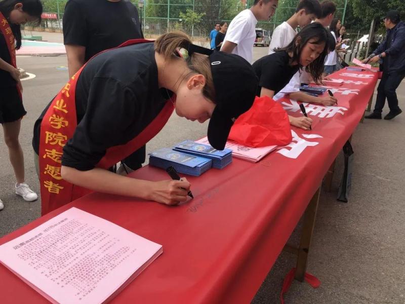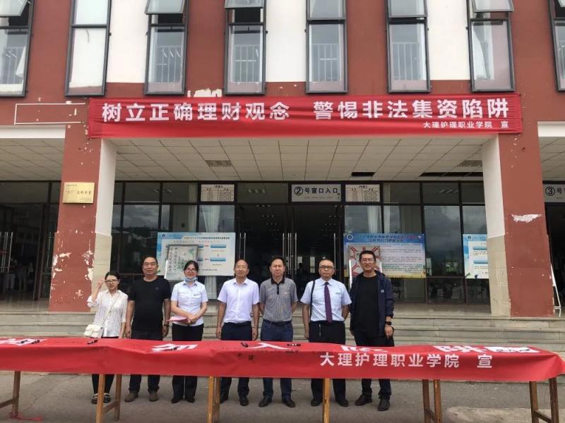 为深入开展党史学习教育,将“我为群众办实事”走深做实,贯彻落实2021年防范非法集资宣传月活动的有关工作,增强我院师生对非法集资的防范意识和识别能力,切实保障师生生命财产安全。6月23日,在学院的安排部署下,保卫科、财务科联合中国建设银行大理茫涌支行共同开展2021年beat365vip官网登录入口防范非法集资宣传活动。学院师生员工和140余名安全志愿者在学院食堂门口进行宣传活动。保卫科杨斌科长就如何提高防范非法集资意识和学习安全知识的必要性等方面进行了宣讲。宣讲结束后,保卫科、财务科和银行工作人员对前来咨询问题的学生进行了解答,随后学院相关领导和师生在宣传布标上进行了签字仪式。此次活动共向师生发放宣传手册1500余份。并通过线上学习方式组织师生积极参加“防范和非法集资知识答题团队争霸赛”。